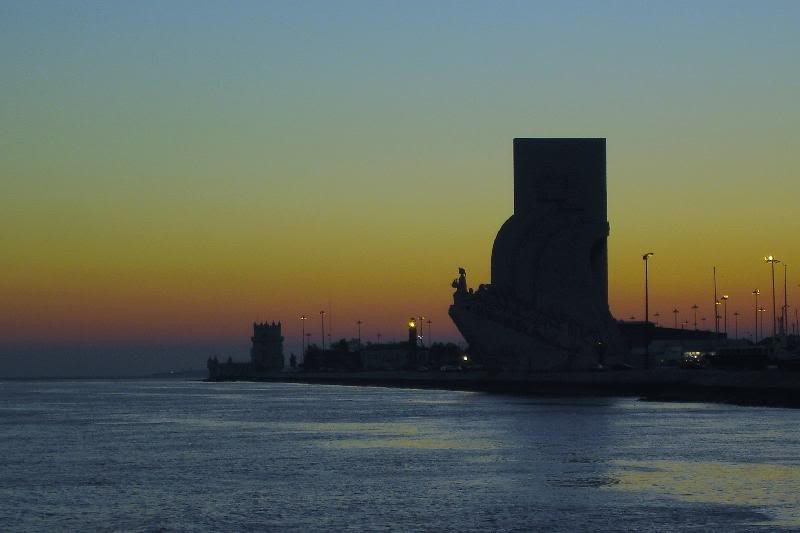 O Padrão das Descobertas e a torre de Belém ao entardecer, Lisboa, 2005.