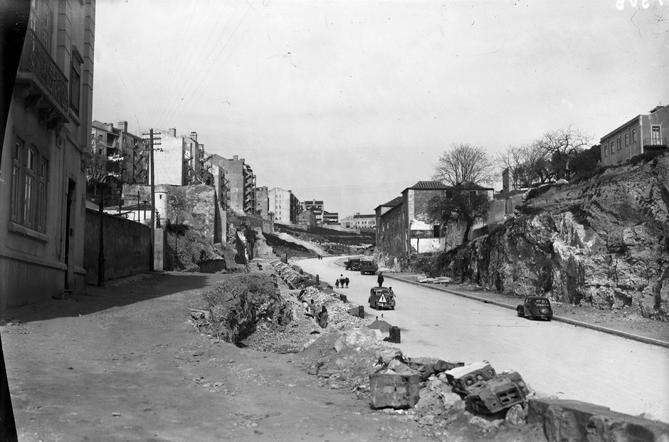 Avenida Infante Santo em construção, Lisboa, 1950.