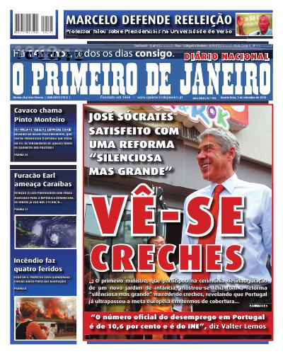 Primeira página d' O Primeiro de Janeiro de hoje, sobre creches. Também eu me custou perceber à primeira, mas lá está...(Via A Civilização do Espectáculo.)