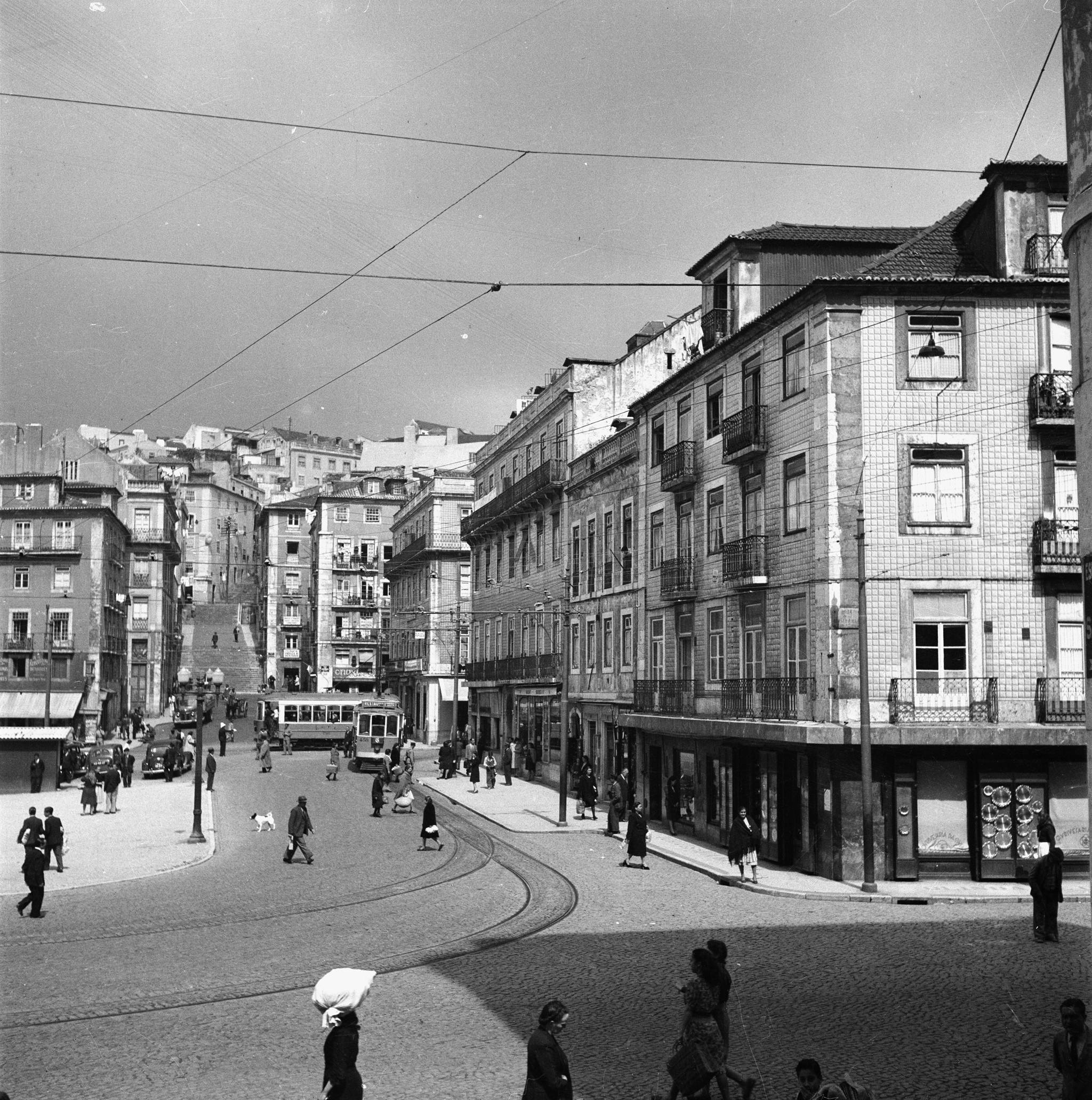 Rua de Martim Moniz vista das escadinhas da saúde, Mouraria, post 1946.