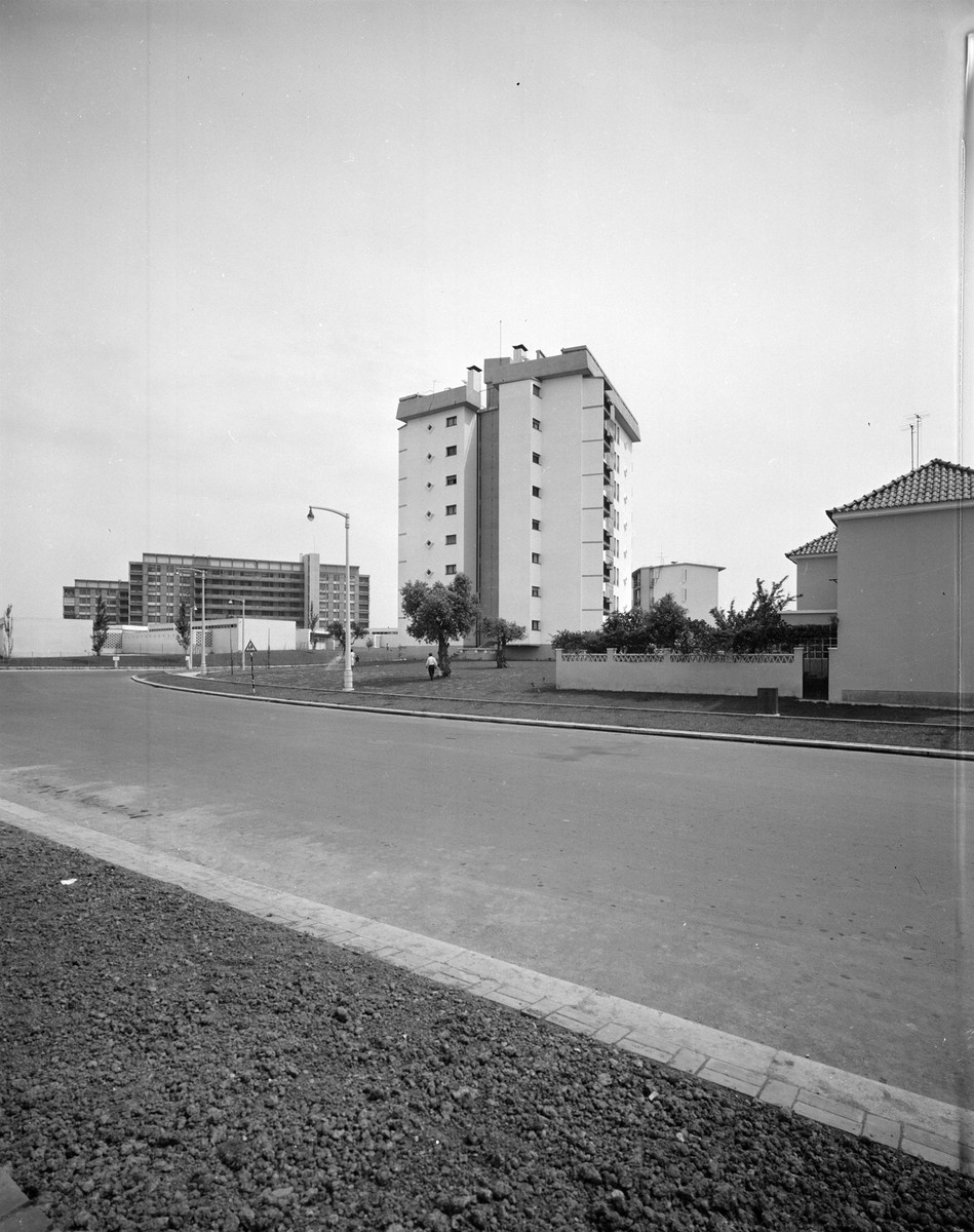 Arquitectos: Nuno Teotónio Pereira e António Pinto de Freitas. Proprietário: Sociedade Cooperativa 'O Lar Familiar'. Fotografias: Prémio Valmor de 1967, Olivais, 1968. Armado Serôdio, in Arquivo Fotográfico da C.M.L..