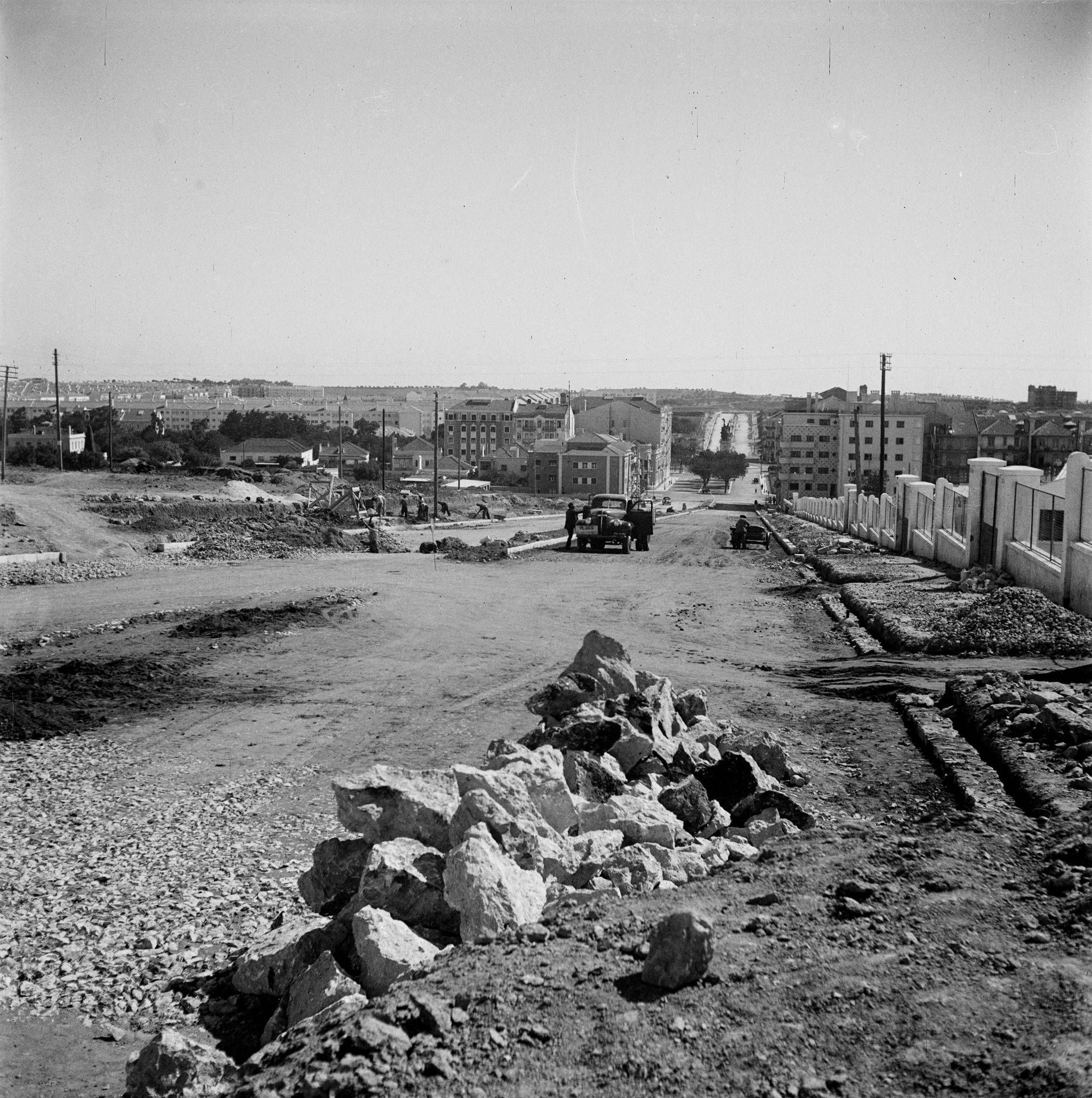 Alvores da Av. 28 de Maio. Como o 28 de Maio anda invertido na Historia ensinada pelo regimen de 25 de Abril, esta imagem está invertida no archivo photographico da camara municipal. Symptomatico?...