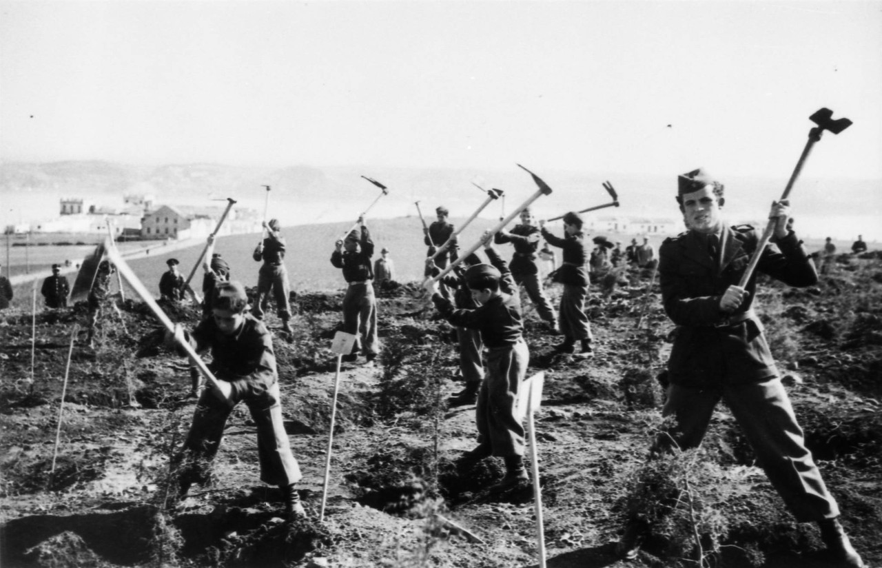 Mocidade Portuguesa plantando a mata, Serra de Monsanto, c. 1944.