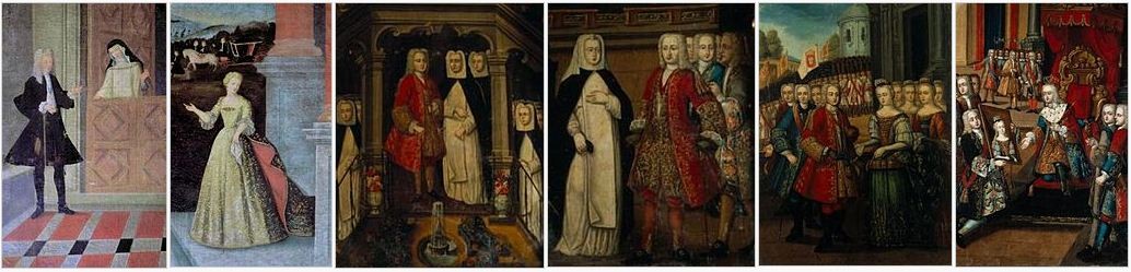 Tenho visto representações anacrónicas de muitas cenas históricas, c omo nos quadros de Manuel Ferreira e Sousa dos passos da vida de Santa Joana Princesa (em cima) ou, como neste (à direita), de João Baptista Pachim, representando Santa Joana com o Menino. Nestes exemplos temos figuras notoriamente barrocas representando em cenas do séc. XV. Tenho ideia que tal sucede por simples perda da memória. Nos exemplos dados medeiam dois séculos entre as histórias e a sua representação, mas no mínimo basta uma geração emudecer para a seguinte acabar surda. Foi o que aconteceu ontem numa notícia da Rádio Renascença à 1h15 da tarde sobre a mudança do Museu dos Coches. Ao landó real chamou a locutora repetidamente landau por erradamente ler à portuguesa o étimo francês. E a pronúncia esquecida côche, ensinada pelos dicionários ainda há uma década ou duas, tornou-se já cóche, com a legitimação do erro a ser-nos servida sem justificação pelo lamentável Priberam. |