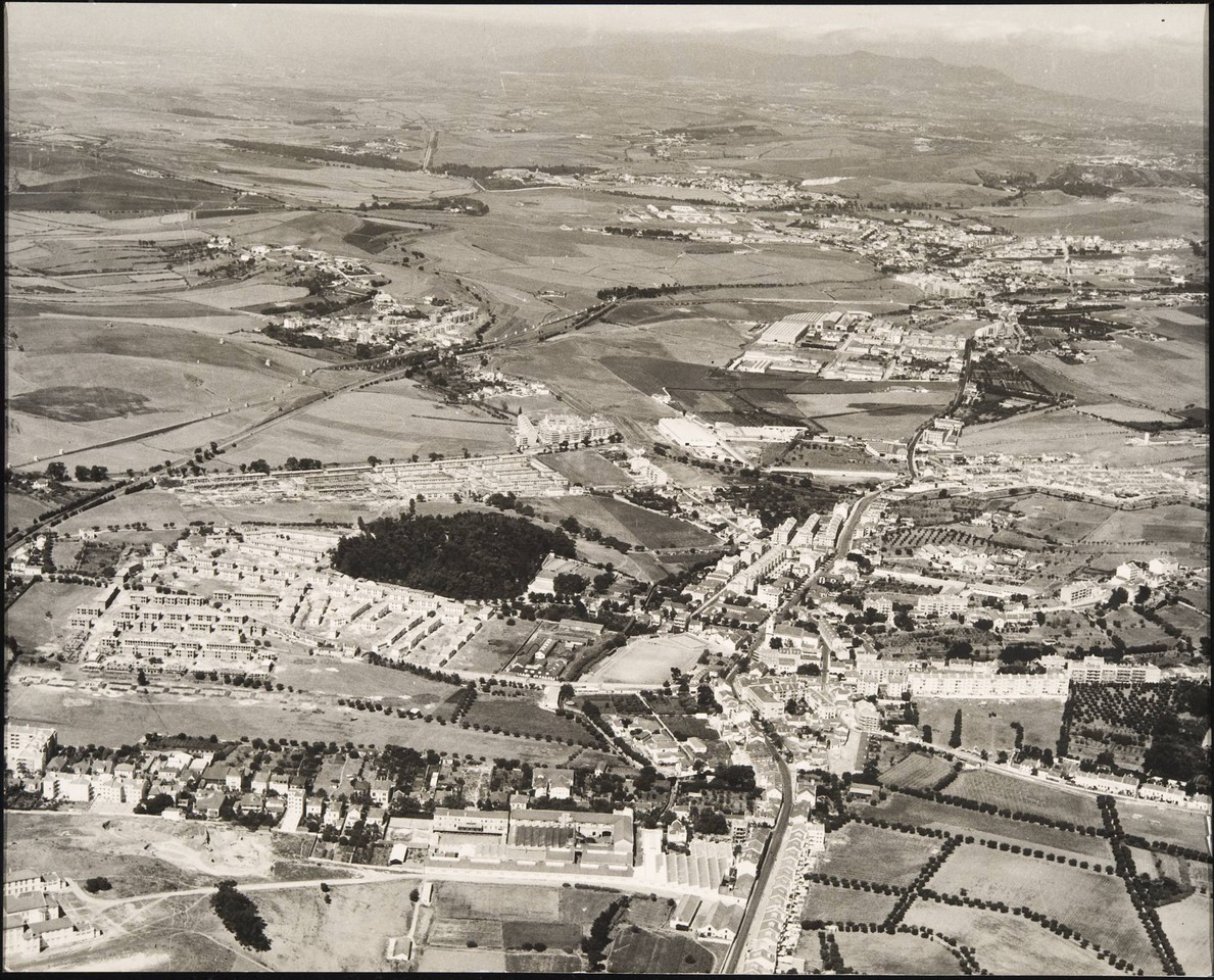 No archivo photographico da C.M.L. acha-se mais esta. Adiantará pouco sôbre a de ontem, salvo poder aclarar um ou outro pormenor menos percebido na anterior -- alguma rua que se assim assim [veja] melhor... -- por ser tirada de maior altitude. Mereceria porventura uma legenda, mas, como me falecem agora o tempo e os meios, fica para depois. Entretanto o que lá foi dito serve agora com a mesma justeza. Vista aérea sobre Benfica, Lisboa, 195...
