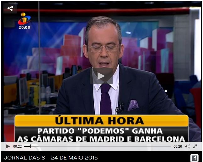 -- Boa noite. Começamos pela revolução eleitoral e política que está acontecer em Espanha. O partido Pó Demos acaba de conquistar os dois municípios mais importantes do país [...] Quanto ao P.P., partido do governo, foi o mais votado na maioria das regiões, venceu em 11 das 13 [...]