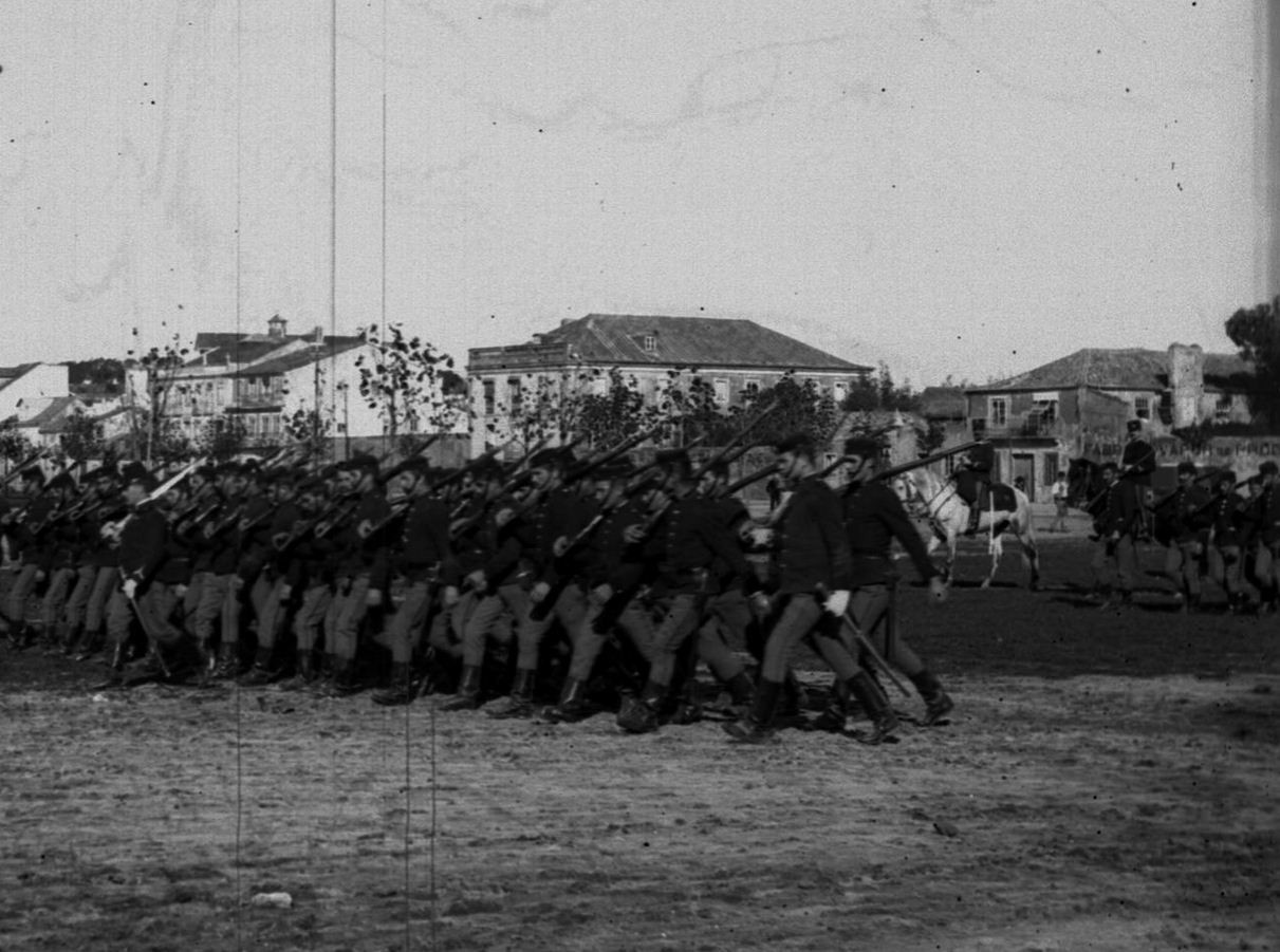 Regimento de Infateria em exercícios, Campo Pequeno, post 1892.