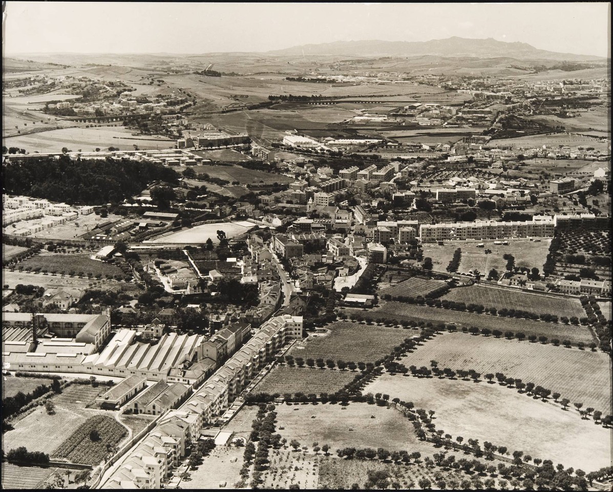 Algumas referências que vejo situam-me o espaço, outras suspendem-me no tempo: dou adiante algumas que identifico de cor; conto com o leitor interessado mais entendido nos pormenores antigos do lugar para que, com paciência ou generosidade, ajude no que faltar.Vista aérea sobre Benfica, Lisboa, 195...
