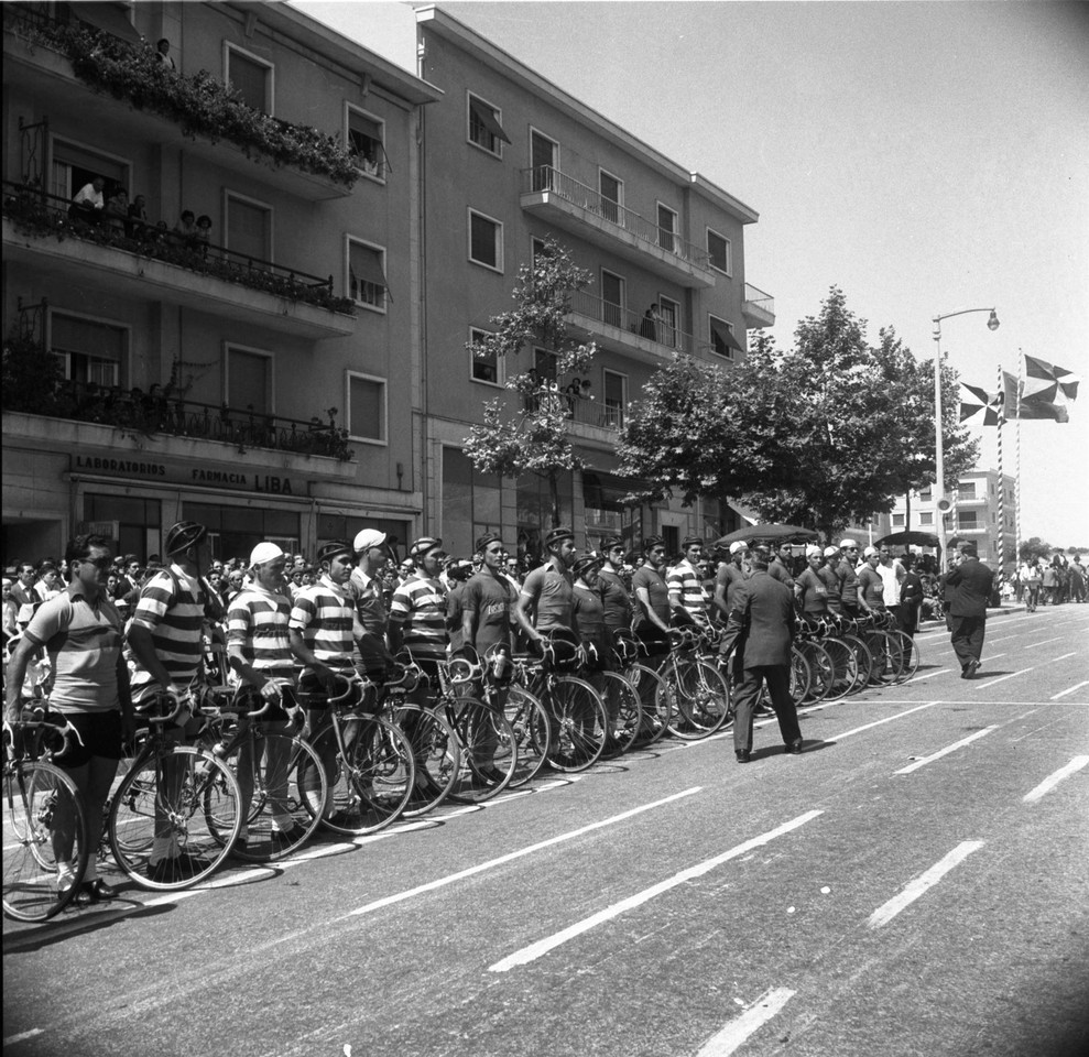 Festas de Lisboa. Corrida do circuito de Alvalade. Avenida da Igreja com a farmácia Liba / Líbia em segundo plano.Festas de Lisboa, Alvalade, 1955.Claudino Madeira, in archivo photographico da C.M.L.