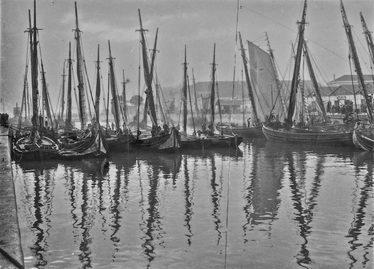 - Fragatas com tempo fosco na doca da Alfândega, Lisboa. Joshua Benoliel, 1912, in A.P.C.M.L., A6887.