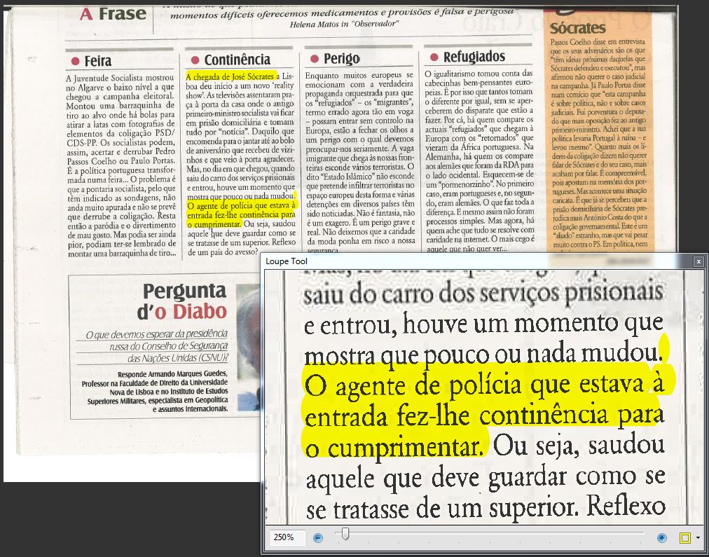Esta manhã parece que há Sporting – Benfica eleitoral. Na emissora nacional a notícia não era bem o acontecimento, mas o facto de ser a emissora nacional mai-lo resto da rádio a promover o acontecimento, inclusive por imagens — vá perceber-se a rádio!... — De caminho ouvi o locutor dos factos anunciar pelo meio dos quadrilheiros de turno à coscuvilhice dos acontecimentos que o contendor Costa fazia esperar o contendor-outro por estar engarrafado. Pois bem, era caso para ter ido de burro.