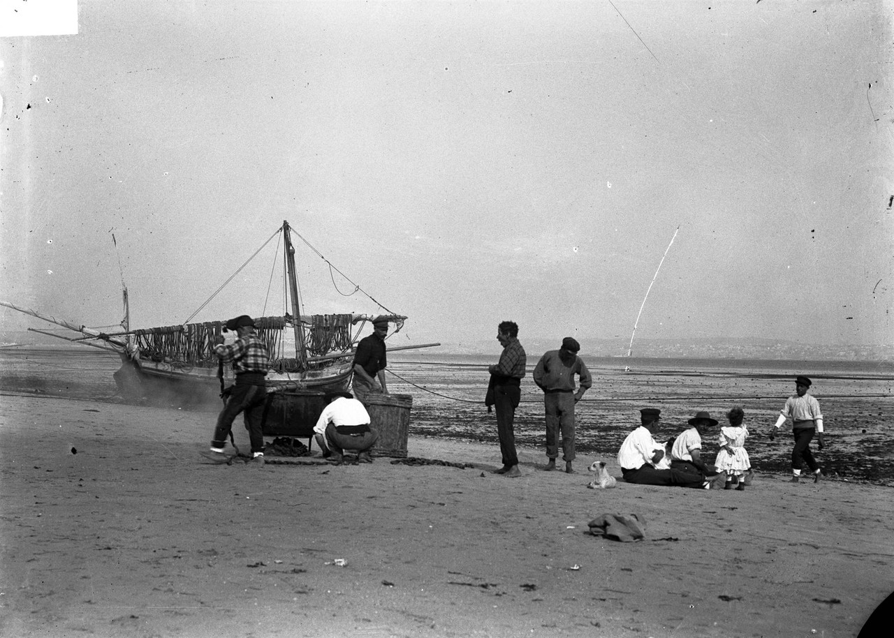 Pescadores na praia do Barreiro, c. 1900.José Arthur Leitão Barcia, in archivo photographico da C.M.L.