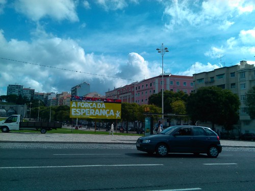 Ora bem, as legislativas foram em 4; o gnomo de jardim proclamou o fim do governo em 12; a imagem é de 20, mas uma semana antes já eu a lá catara. Bate certo: uma semaninha depois das eleições lá estava a força da esperança; foi só o tempo da tipografia...