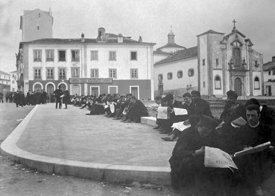 Estudantes ávidos de notícias, Coimbra, 1907.Fotografia de Adelino Furtado, in Portugal Velho.