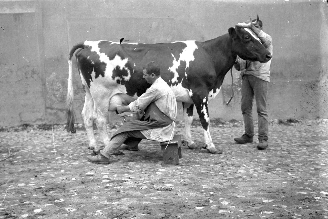 A cavacal figura avalizou a ordenha. Siga a mama.Quinta da Cardiga, Golegã, 1910.Joshua benoliel, in archivo photographico da C.M.L.