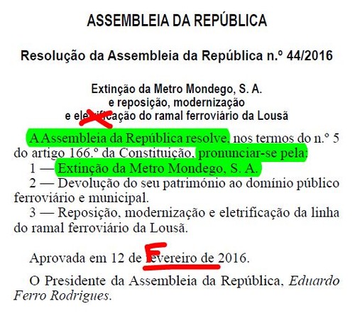 A deputação e deputaçoa às cortes populares de Abril resolveu pronunciar-se pela extinção do Metro do Mondego &c.