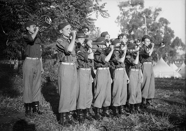 Fotografia: Mocidade Portuguesa das 600 escolas festejando os refugiados. Original s.d. do estúdio de M. de Novaes, in Bibliotheca d' Arte da F.C.G.