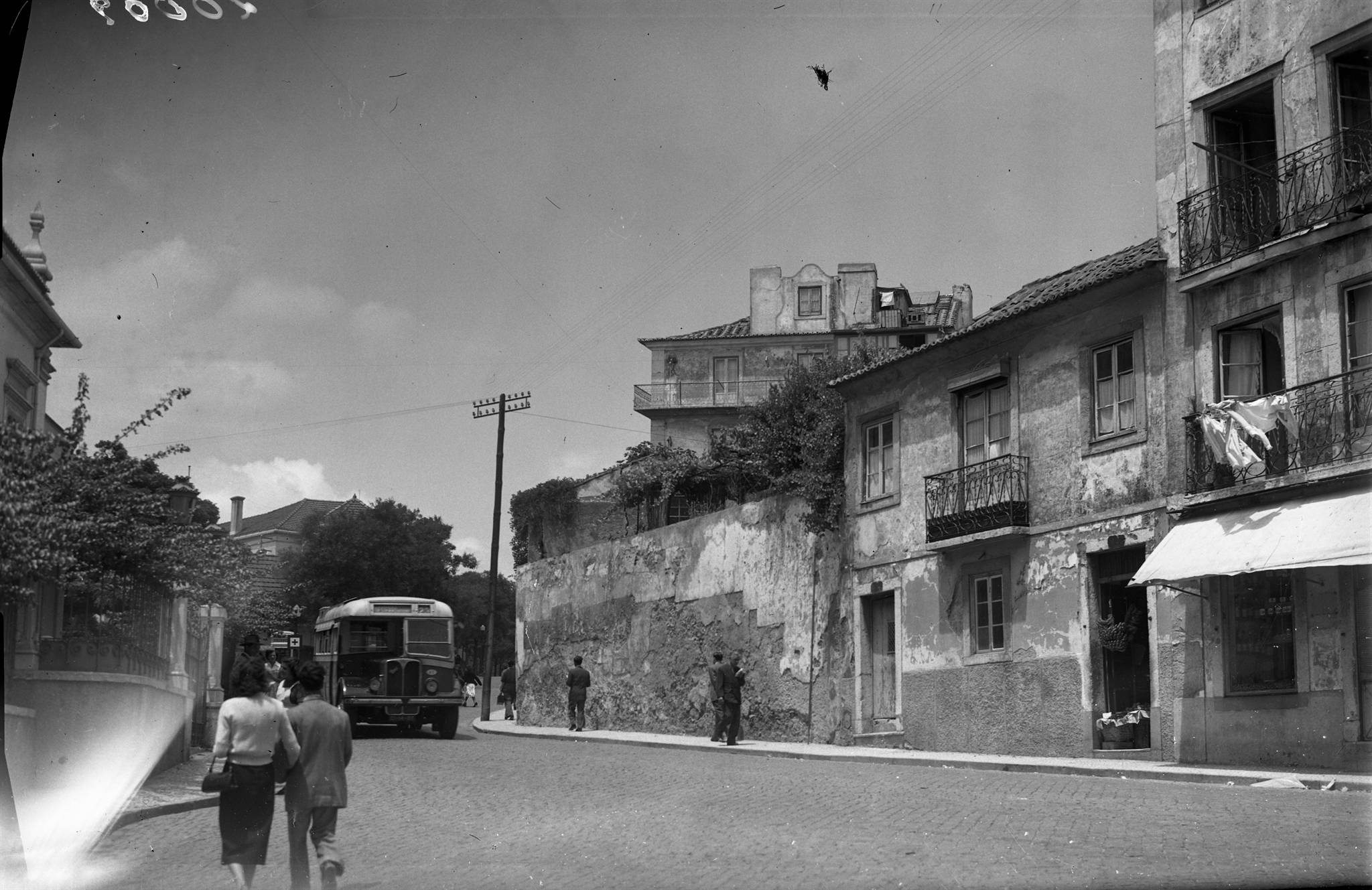Afinal o quintal alto na Rua da Alameda dos Capuchos sempre tinha uma porta cá em baixo dando serventia para a rua. Era deste lado. Estoutra photographia tomada por Judah Benoliel do lado da dicta Alameda para o Palácio Centeno cá no-la mostra. Lisboa, circa 1953 — pelo menos a julgar da de Eduardo Portugal...